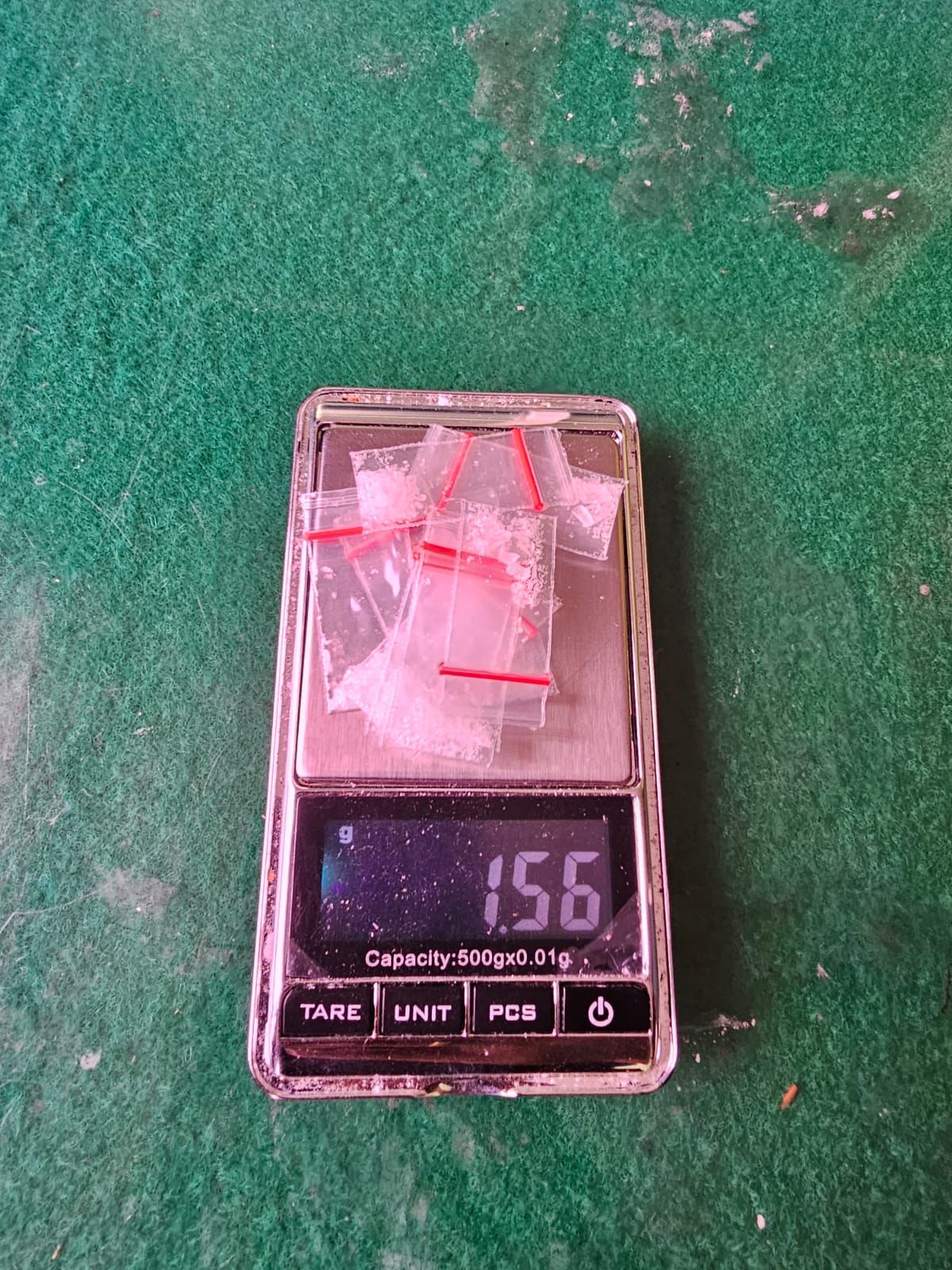 Menurut Sembiring, total berat barang bukti sabu mencapai 1,56 gram. Selain itu, polisi juga menyita satu alat isap (bong), satu tas selempang, serta satu unit telepon genggam.