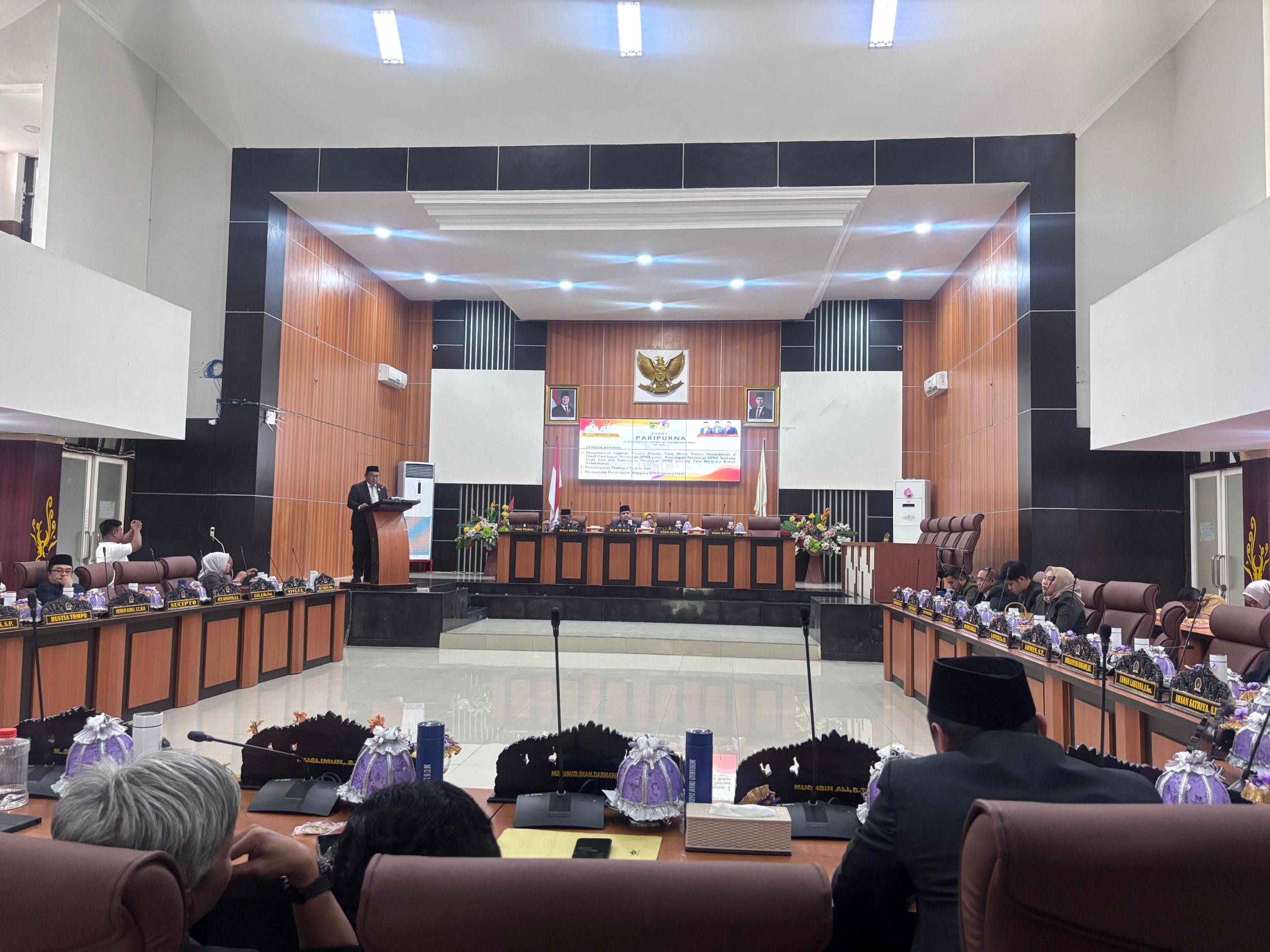 Narasita.com- Palu, – DPRD Kota Palu menggelar rapat paripurna dengan agenda pembahasan dua rancangan peraturan DPRD, yakni tentang Kode Etik dan Tata Beracara Badan Kehormatan. Sidang berlangsung di ruang sidang utama DPRD Kota Palu, Senin (15/9/2025).