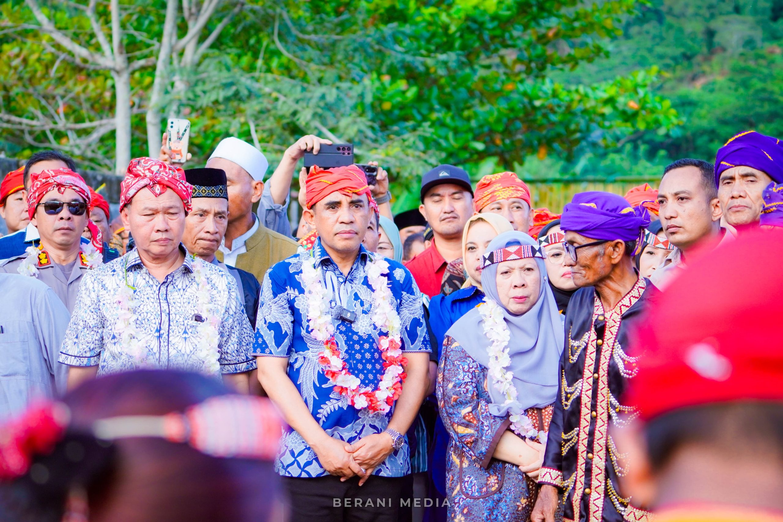 Peletakan batu pertama dilakukan secara simbolis di hadapan ratusan warga yang turut menyaksikan acara bersama para tokoh agama dan adat setempat.