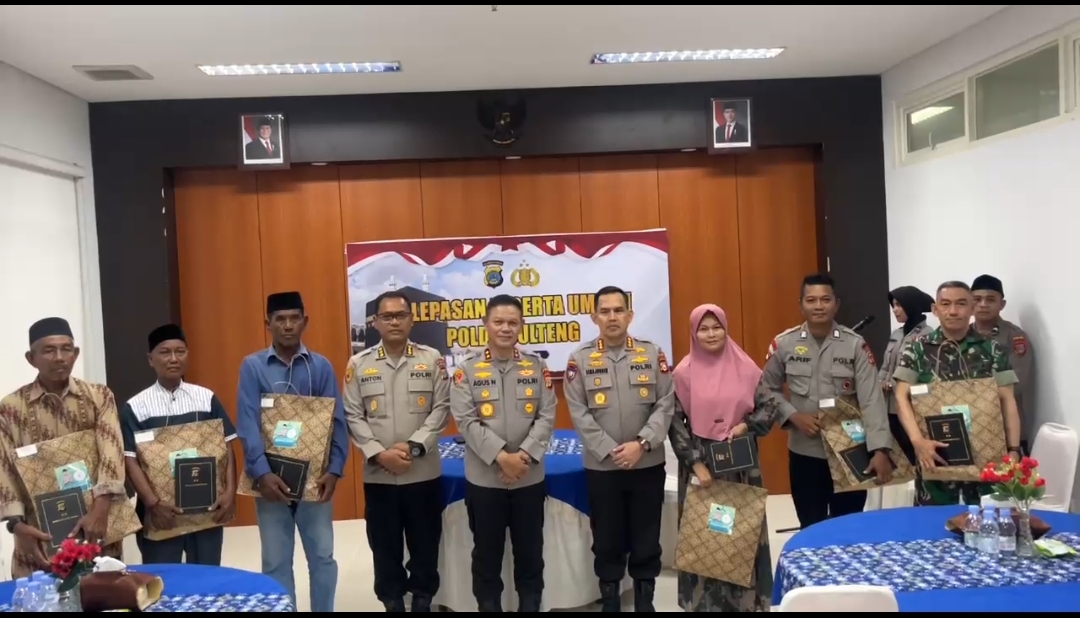 Narasita.com- Palu, – Kepolisian Daerah (Polda) Sulawesi Tengah melepas keberangkatan 11 peserta umroh gratis dalam rangka menyambut Hari Bhayangkara ke-79. Prosesi pelepasan dilakukan langsung oleh Kapolda Sulteng, Irjen Pol. Dr. Agus Nugroho, di ruang rapat Kapolda, Rabu (16/7/2025).