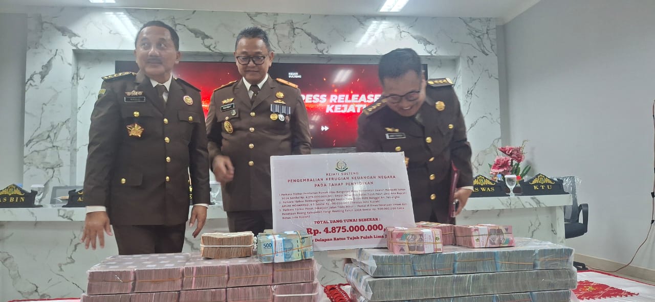 Pengembalian kerugian negara tersebut dilakukan pada tahap penyidikan. Rinciannya, perkara korupsi pembelian rumah atau bangunan mess Pemerintah Daerah Morowali tahun 2024 senilai Rp4,275 miliar, kasus pembangunan tangki septik pada Dinas PUPR Banggai dengan tersangka Amuri Mohammad sebesar Rp100 juta, serta dugaan korupsi paket pekerjaan Jalan Trans Bimoli Pantai di Dinas PUPR Parigi Moutong tahun 2023 senilai Rp500 juta.