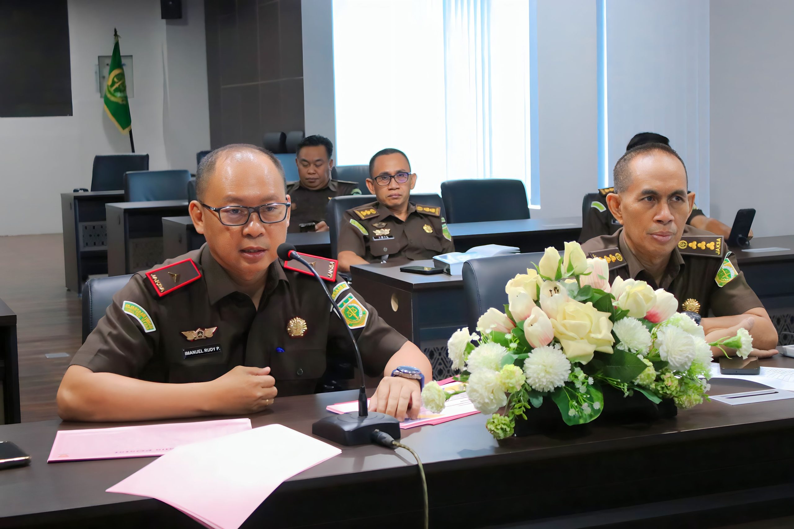 Ekspose permohonan penghentian penuntutan dipimpin Wakil Kepala Kejati Sulteng Imanuel Rudy Pailang didampingi Asisten Tindak Pidana Umum Andarias D’Orney, Rabu (25/2/2026). Kegiatan tersebut dilakukan secara daring bersama Jaksa Agung Muda Tindak Pidana Umum melalui Direktur Tindak Pidana terhadap Orang dan Harta Benda.