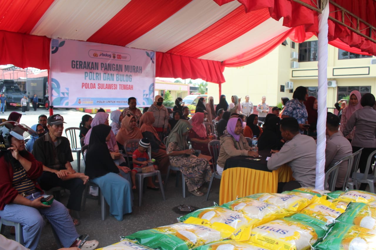 Narasita.com- PALU – Polda Sulawesi Tengah bersama Polres jajaran menyalurkan 82,75 ton beras Stabilisasi Pasokan dan Harga Pangan (SPHP) di 41 lokasi se-Provinsi Sulawesi Tengah dalam rangka Kick Off Gerakan Pangan Murah (GPM) yang digelar Kamis (14/8/2025).