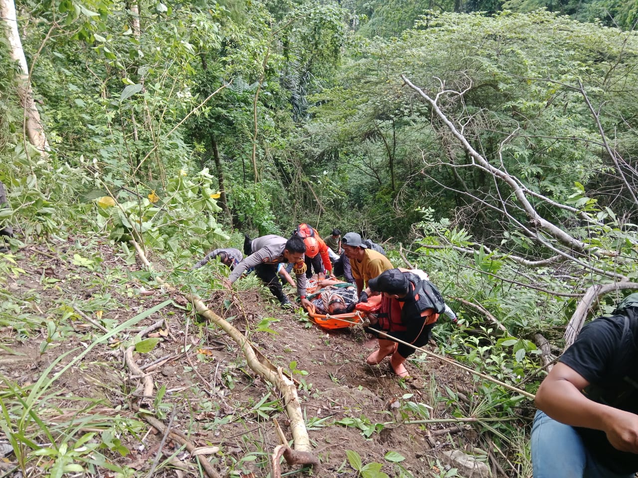 Korban yang berhasil dievakuasi adalah Kasmad Larasa (42), warga Tawaeli. Ia ditemukan pada kedalaman sekitar 110 meter dalam kondisi selamat namun mengalami patah tulang pada kaki kiri. Setelah berhasil dievakuasi, korban segera dilarikan ke RS Anutaloko Parigi untuk mendapatkan perawatan medis.