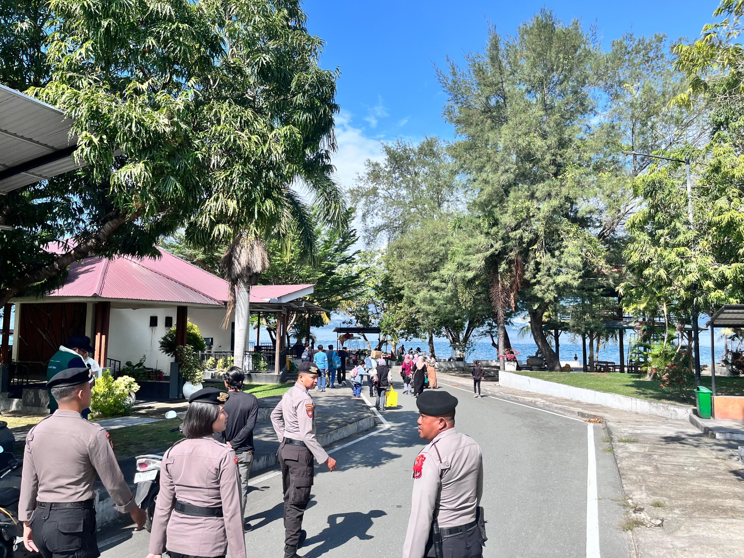 Pengamanan difokuskan pada upaya preemtif dan preventif, terutama di lokasi yang menjadi titik konsentrasi pengunjung. Berdasarkan pantauan di lapangan, Subsatgas Objek Vital melakukan patroli dialogis di kawasan wisata Kampung Nelayan Talise. Petugas memantau aktivitas pengunjung guna menjaga situasi tetap aman dan kondusif.