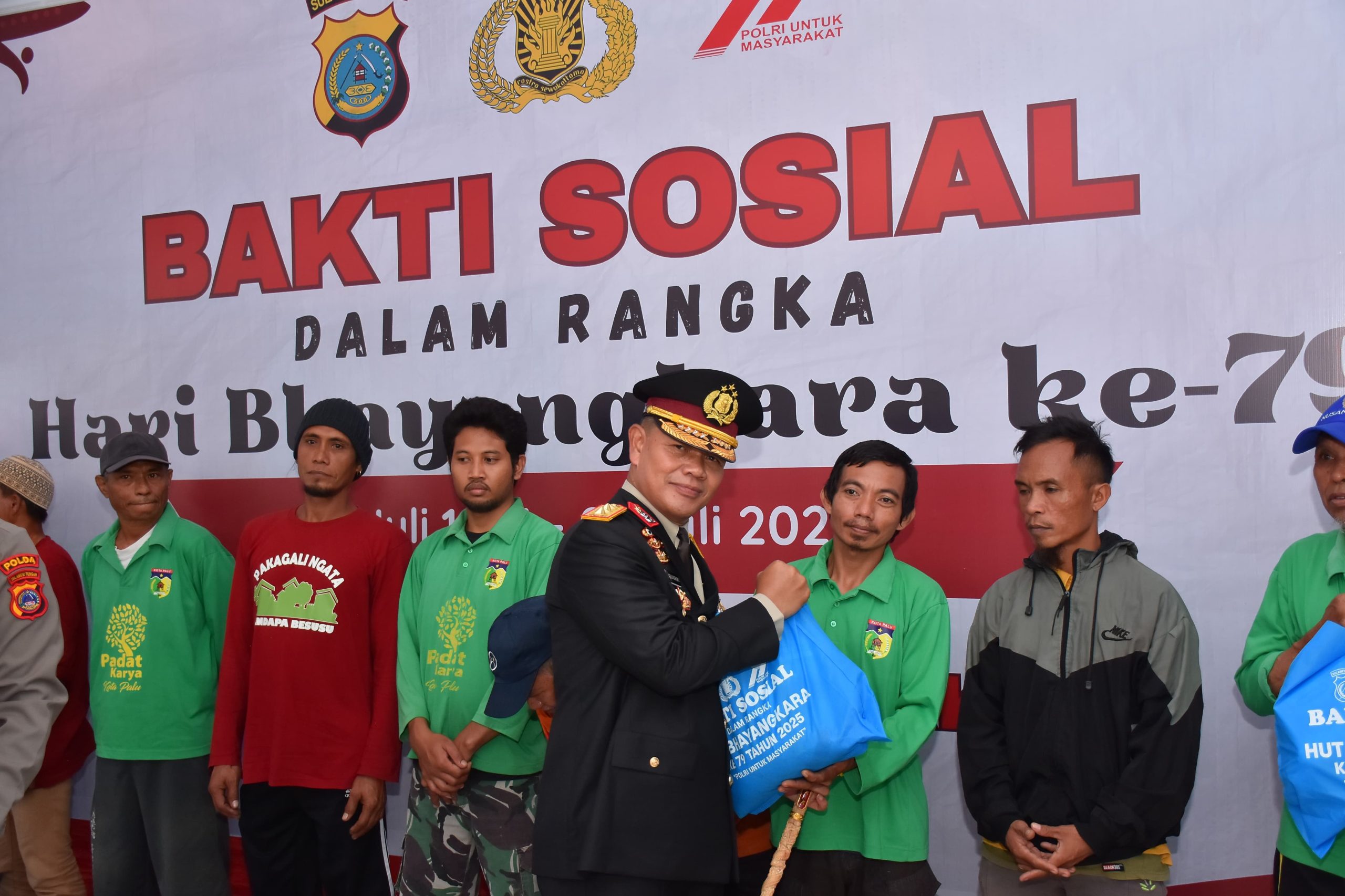 Narasita.com- PALU, – Kepala Kepolisian Daerah Sulawesi Tengah (Kapolda Sulteng) Irjen Pol. Dr. Agus Nugroho membagikan ratusan paket bantuan sosial kepada masyarakat usai memimpin upacara peringatan Hari Bhayangkara ke-79 di Halaman Kantor Gubernur Sulawesi Tengah, Selasa (1/7/2025).