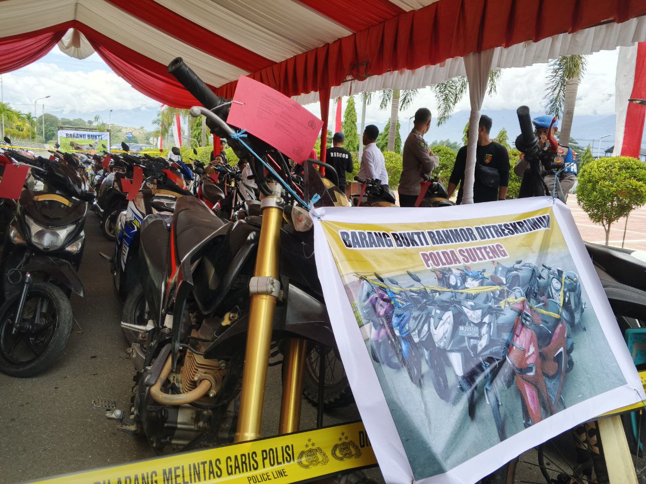 Dalam konferensi pers yang digelar di Mapolda Sulteng, Senin (30/7/6/2025), polisi turut menyita sebanyak 66 unit sepeda motor (R2) hasil kejahatan. Dari jumlah tersebut, 53 unit merupakan hasil pengungkapan Polda dan 13 unit lainnya dari jajaran Polres, termasuk operasi gabungan.
