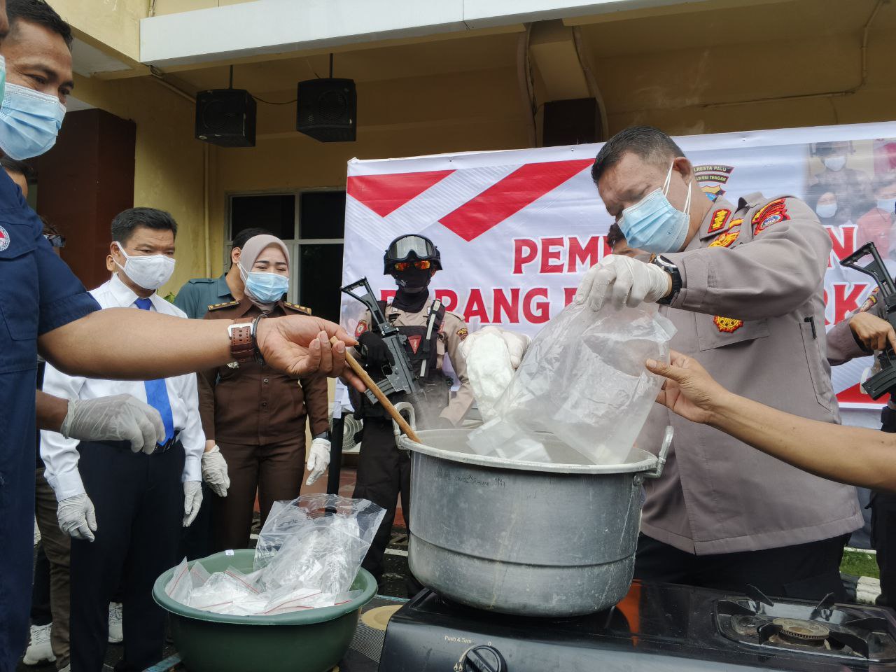 Barang bukti sabu telah dimusnahkan sebanyak 2.420,6181 gram dari total sitaan. Sisanya disisihkan untuk keperluan uji laboratorium dan pembuktian di pengadilan.