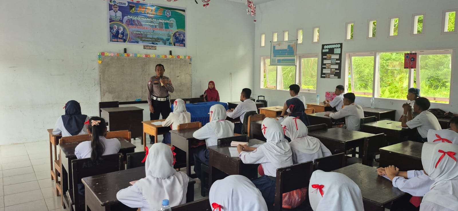 Narasita.com- Ampana,  – Satuan Lalu Lintas (Satlantas) Polres Tojo Una Una (Touna) memberikan edukasi mengenai tertib berlalu lintas kepada para siswa baru SMA Negeri 2 Ampana Kota dalam kegiatan Masa Pengenalan Lingkungan Sekolah (MPLS), Kamis (3/7/2025).