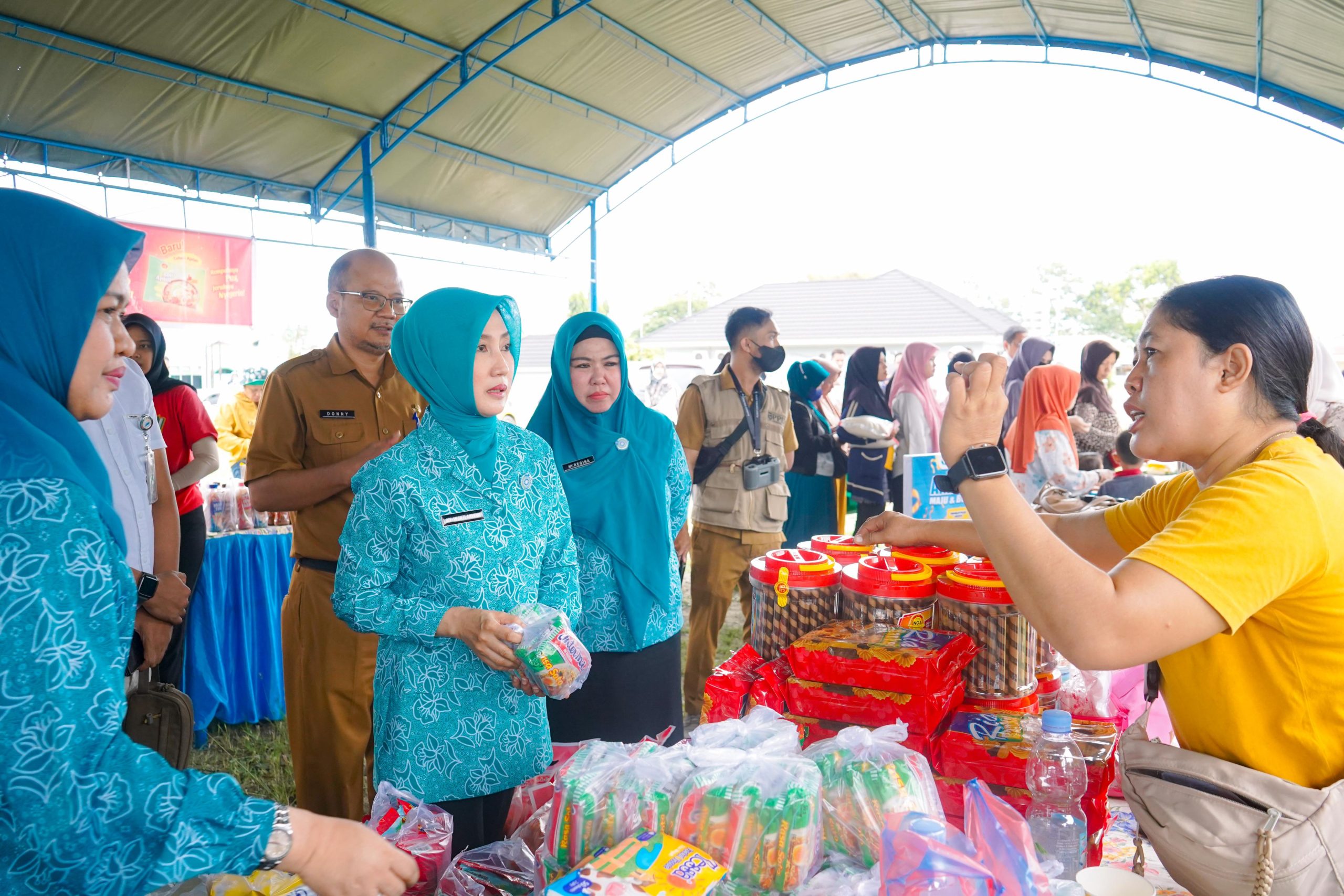 Dalam kunjungannya, Sry Nirwanti meninjau langsung aktivitas jual beli yang dipadati warga, terutama untuk memenuhi kebutuhan pokok rumah tangga seperti beras, minyak goreng, gula pasir, dan cabai.