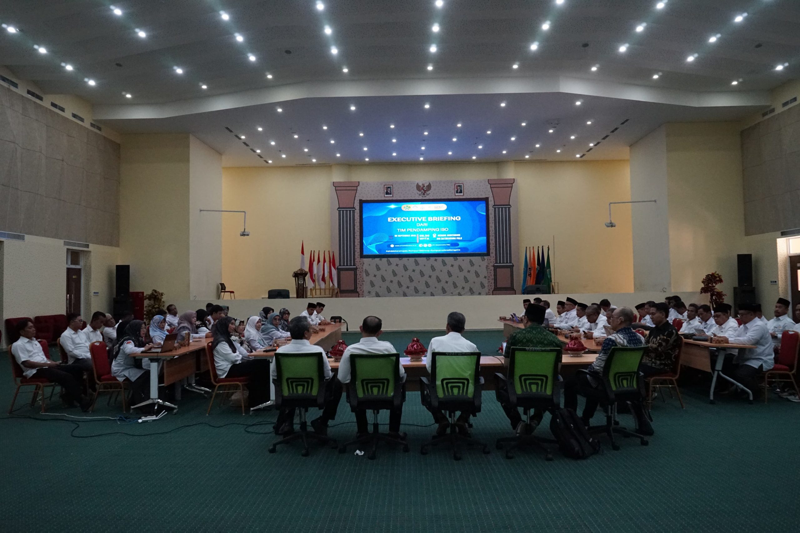 Persiapan menuju sertifikasi ISO dilakukan melalui kegiatan Executive Briefing yang dihadiri jajaran pimpinan universitas, mulai dari wakil rektor, dekan fakultas, wakil dekan, direktur pascasarjana, hingga tenaga kependidikan. Acara berlangsung di Auditorium UIN Datokarama dan menghadirkan pendamping dari Best-Q Institut, yakni Helmi Syaifuddin dan Rosihan Aslihuddin.