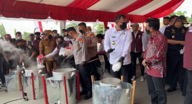 Kegiatan tersebut turut dihadiri Gubernur Sulawesi Tengah Anwar Hafid, Kepala Kejaksaan Tinggi Sulteng, Kepala BNNP, Kepala Bea Cukai, serta sejumlah pejabat vertikal lainnya.ntz