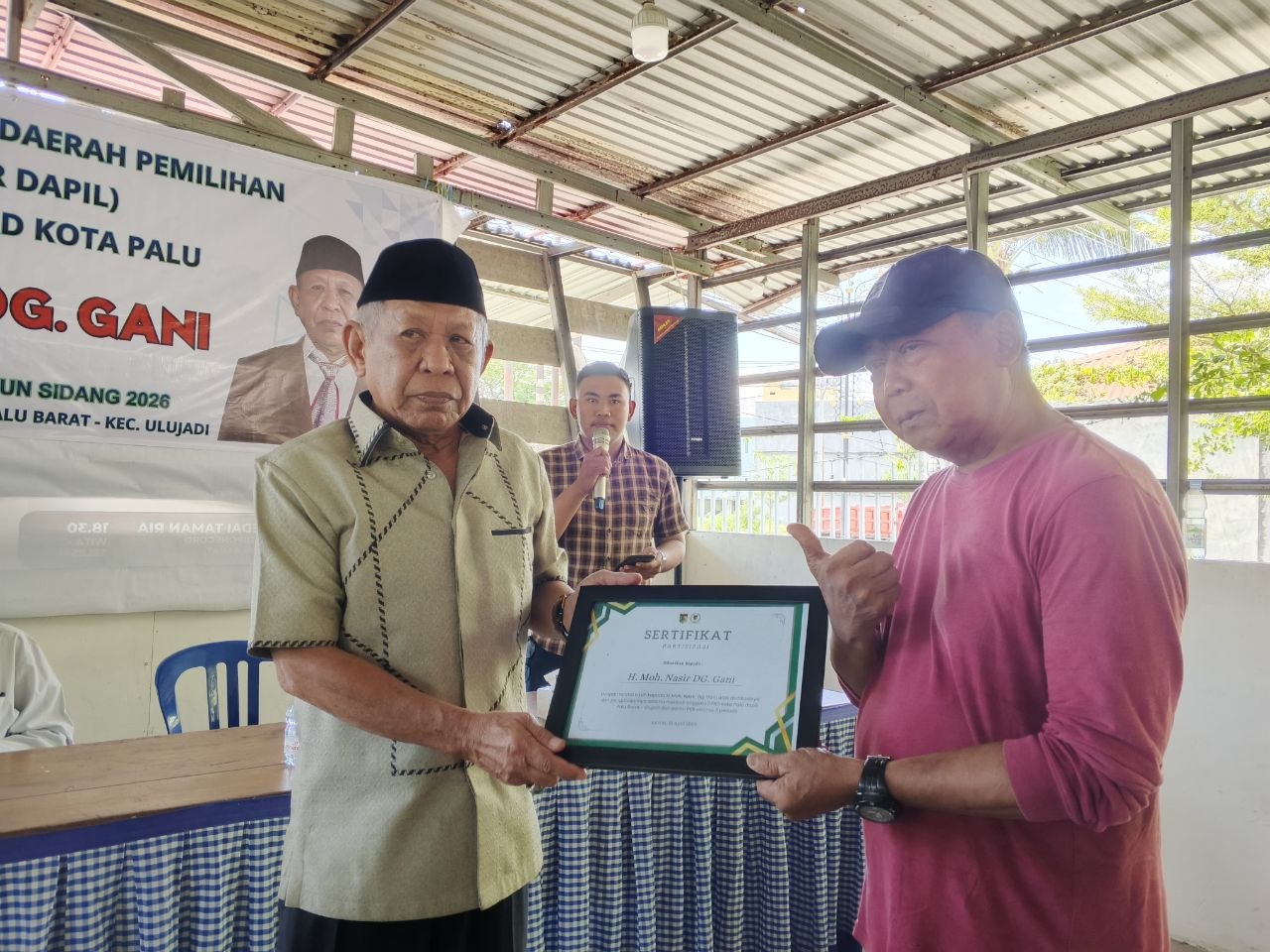 Narasita.com- PALU — Masyarakat Kota Palu memberikan apresiasi kepada anggota DPRD, Nasir Dg Gani, atas pencapaiannya selama menjabat tiga periode. Apresiasi tersebut diwujudkan dalam bentuk sertifikat partisipasi yang diberikan langsung oleh warga di Sela Kundapil Jalan Ponegoro, daerah pemilihan (dapil) IV yang meliputi Kecamatan Palu Barat dan Ulujadi.